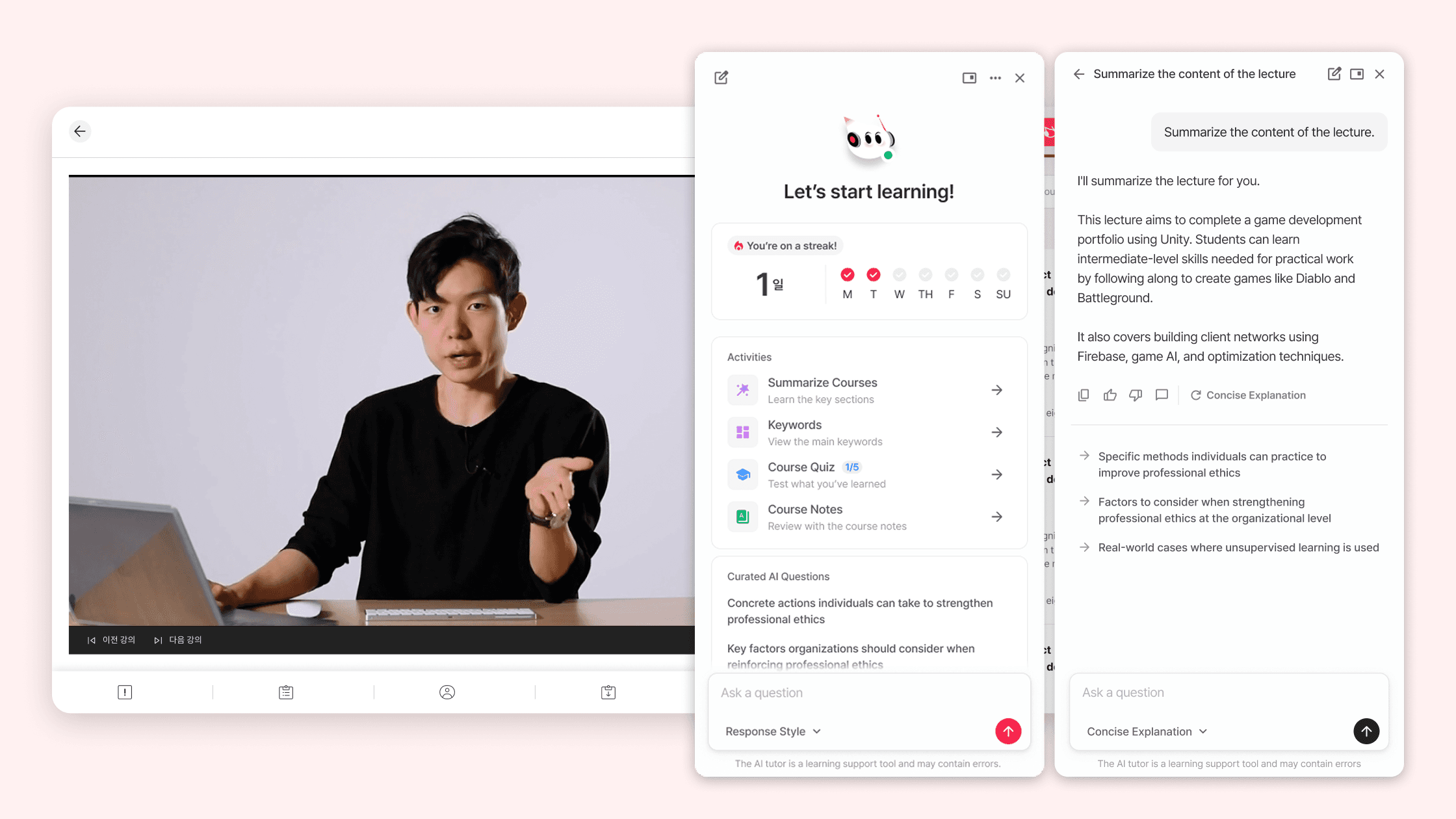 수강생과 함께 온라인으로 강의 영상을 보며 질의응답할 수 있는 AI 튜터 개발